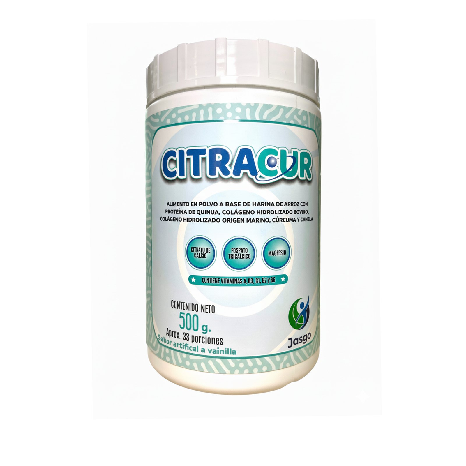 Alimento en polvo a base de harina de arroz con proteína de quinua, colágeno hidrolizado bovino, colágeno hidrolizado origen marino, cúrcuma y canela.